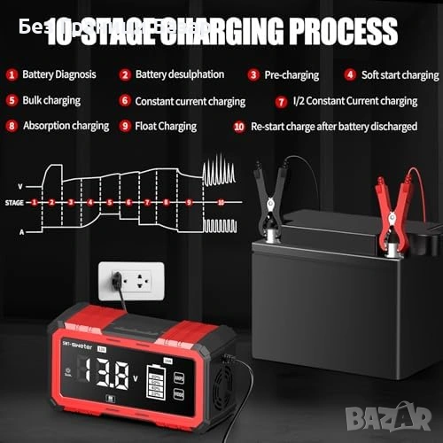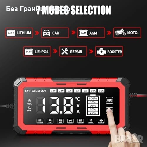 Смарт зарядно за акумулатор 16A с поддръжка на 12V/24V системи