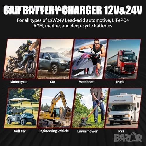 Ново 16A смарт зарядно за акумулатор 12V 24V LiFePO4 AGM GEL кола автомобил