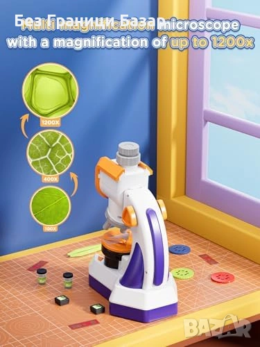 Нова играчка Детски STEM микроскоп с проектор 100X 400X 1200X комплект