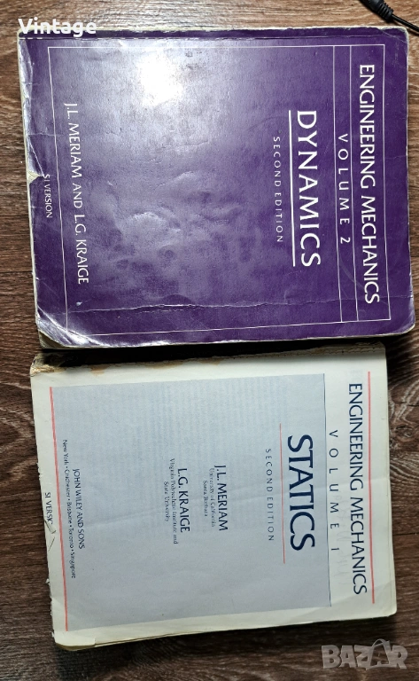 Продавам комплект от двата основни тома по Инженерна механика на световноизвестните автори J.L. Meriam и L.G. Kraige. Учебниците са класика в обучението на инженери и са изключително полезни за подготовка по Статика и Динамика.