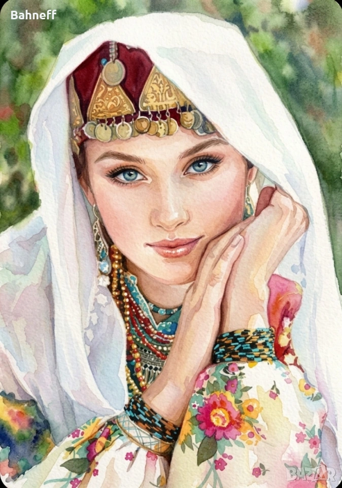 Ако някой желае дигитални картини акварел и масло размери 33/49 цена за 20 евро .Мога да ви направя и по млади усмихнати и с други дрехи Изработка на акварел на акварелна хартия тонирана мога да направя също и маслен портрет на същата.Ако някой желае платно цената е 30евро на брой.