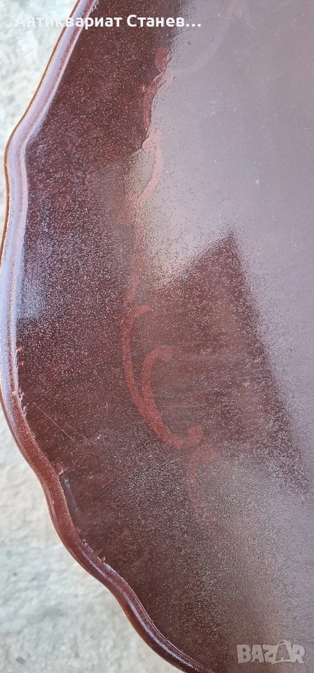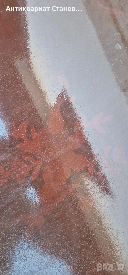 🎨 Плотът е с по-ново, любителски нанесено покритие (байц/лак), положено върху стария слой. Това е замъглило част от оригиналните шарки и е дало по-тъмен, винтидж ефект. При желание повърхността може лесно да бъде освежена или преработена според вкуса на новия собственик.