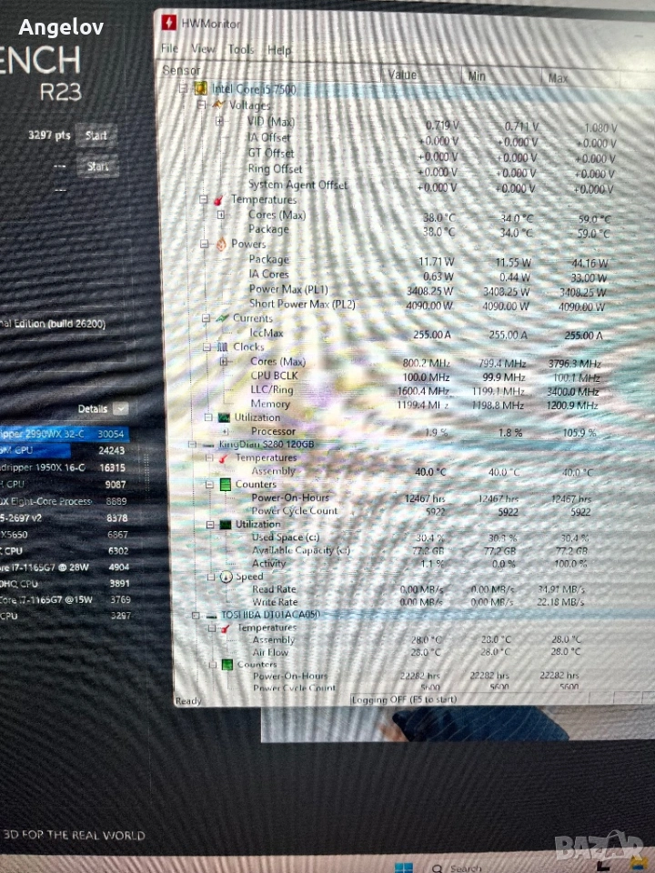 • Процесор: Тестван със Cinebench R23 – поддържа ниски температури при пълно натоварване. Процесора не е вдигнал повече от 60 градуса, като през цялото време работи плавно.