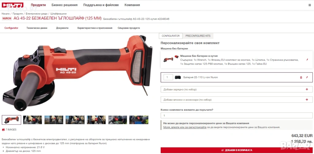 Продавам безчетков акумулаторен ъглошлайф на Хилти с потенциометър за регулиране на оборотите от новата Nuron серия. Машината има козметични следи от използване, но работи отлично и без забележки, производство от 12.2024г. внос от Франция. Обявената цена включва машината и една батерия 22V 5.10Ah с индикатор. Пращаме с опция преглед и тест с куриерска фирма еконт може и лично предаване за гр. Шумен.