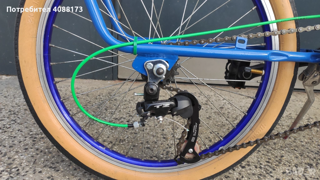 Сглобен 2026 г. с нови части - заден дерайльор (5 скорости) "Shimano Toutnier", преден дерайльор "Shimano" (3 скорости). Алуминиеви курбели с три плочи на средното движение и венец с 5 скорости на задната капла. Общо 5 х 3 = 15 скорости. Нови алуминиеви двустенни капли - 20 цола с нови вътрешни и външни гуми. Нова модерна предна вилка. Нова анатомична седалка Medicus Gel + калъвка с гел. Нови спирачки. Заден багажник. Има и нова багажна кошница за отпред. Възможен демонтаж на кошницата и монтаж на нов преден фар, включени в обявената цена.