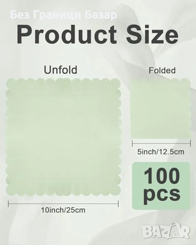 Размер 25 x 25 см разгънати, 12.5 x 12.5 см сгънати