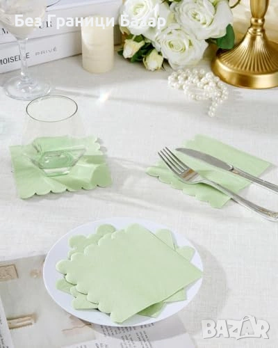 Нови Декоративни салфетки сейдж зелено 100 бр 2-пластови 25x25 за сватба рожден ден