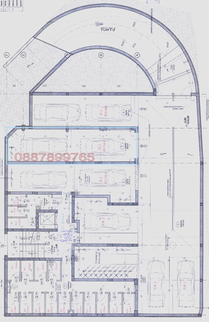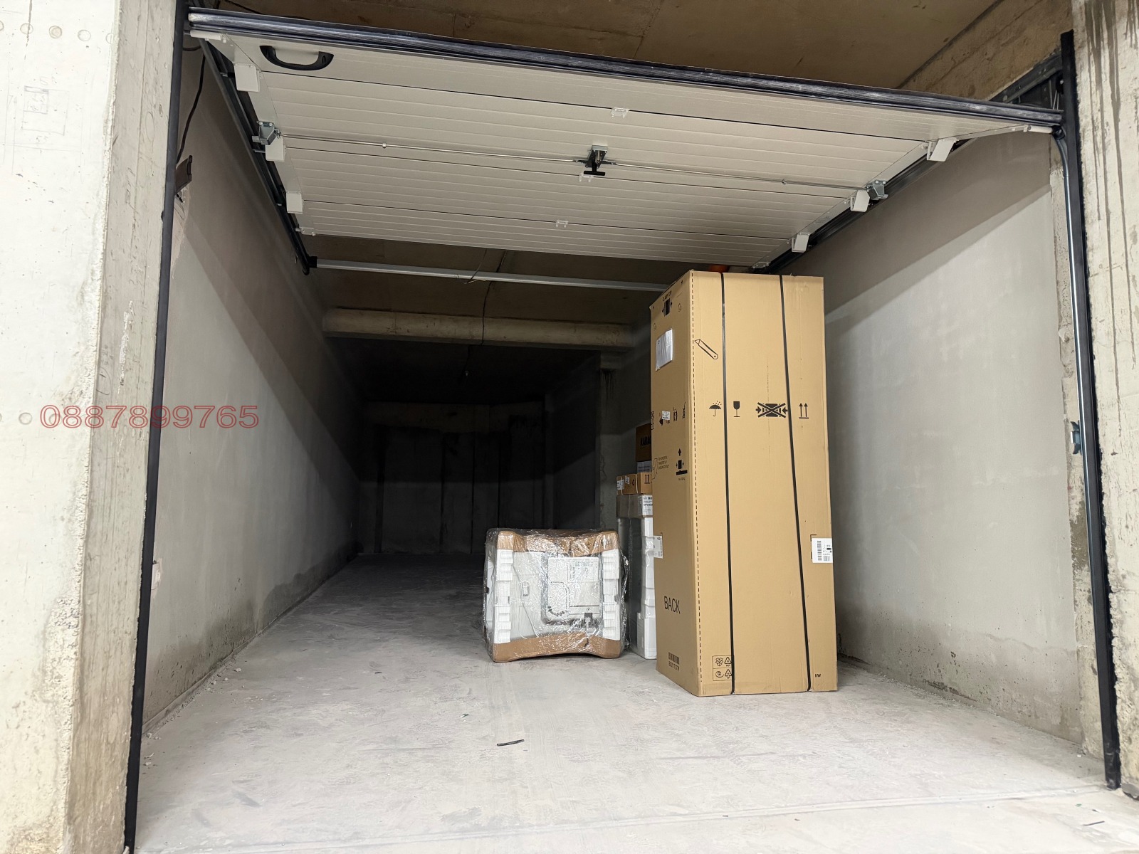 С апартамента се отдава и подземен гараж ~45 кв.м с ролетна врата за два автомобила (паркирани един зад друг). Задната част на гаража се ползва като избено помещение.