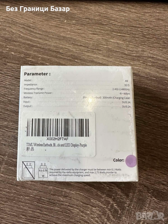 Нови TIMU A9 безжични слушалки Bluetooth In-Ear светлолилави Wireless Earbuds