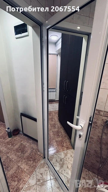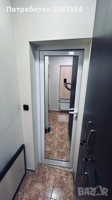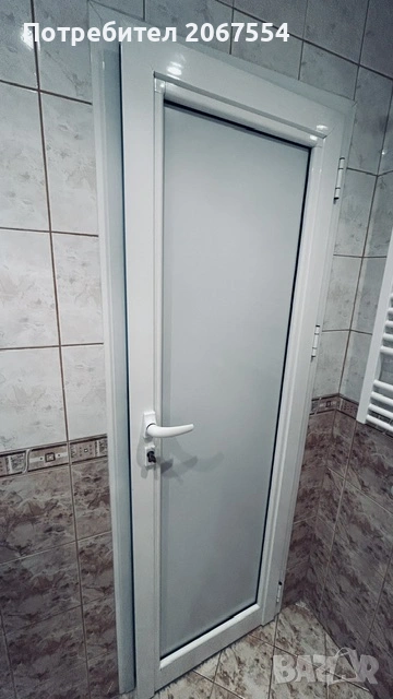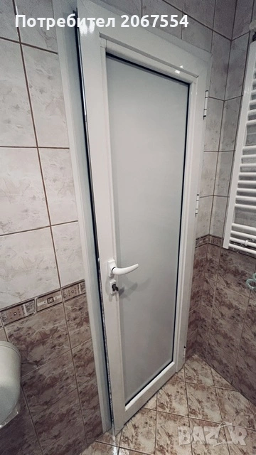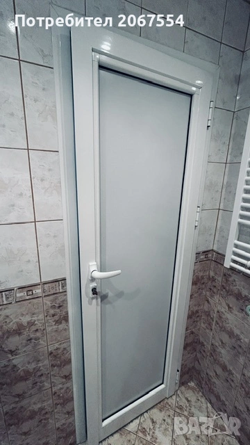 София. Почти нова алуминиева бяла врата за баня, с огледало от едната