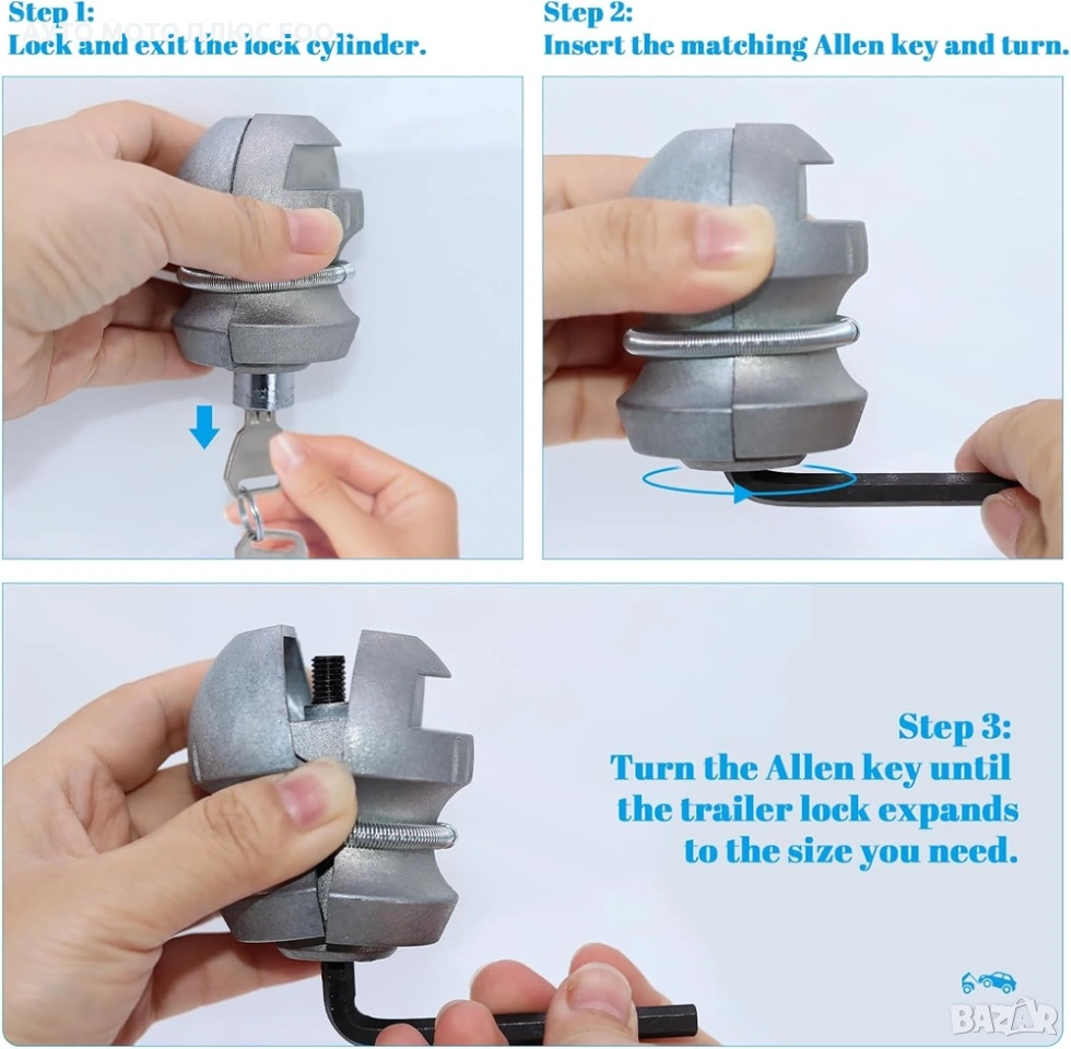 Секретната ключалка за ремарке с шестограм и 2 ключа.