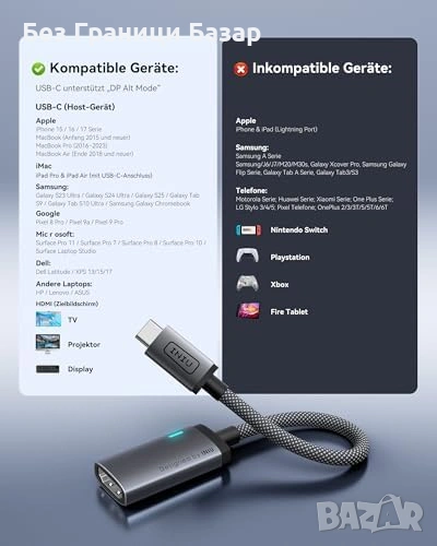 Нов INIU 4K 60Hz USB-C HDMI адаптер за лаптоп телефон таблет MacBook iPhone Samsung