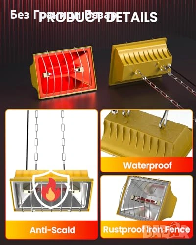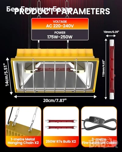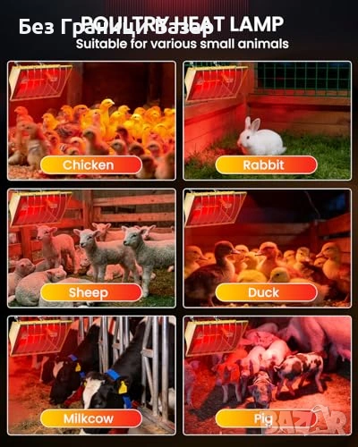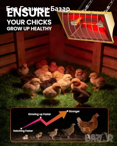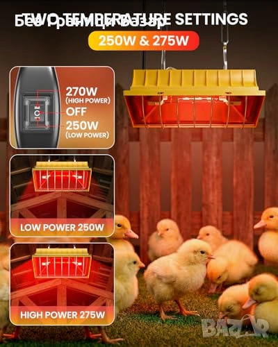 Нова Отоплителна лампа за птици 250W водоустойчива с 3 метра кабел за кокошарник