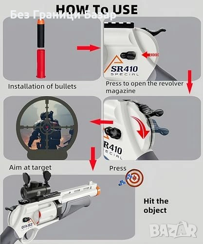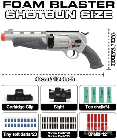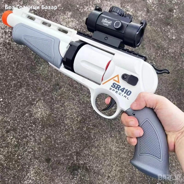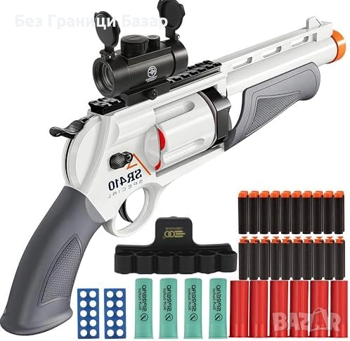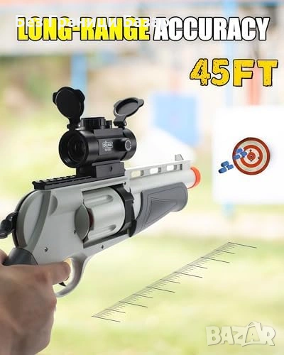 Нова Играчка бластер с въртящ барабан 5 изстрела 60 стрелички за деца игра