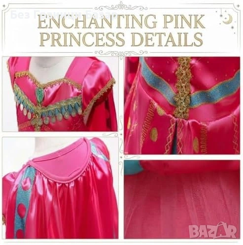Нов Детски костюм принцеса розов комплект с тиара пръчка ръкавици 5/6 години