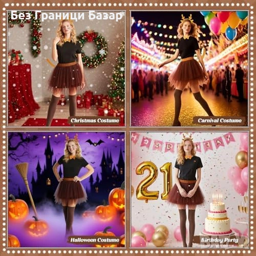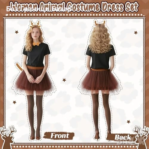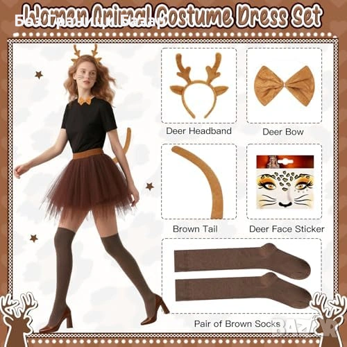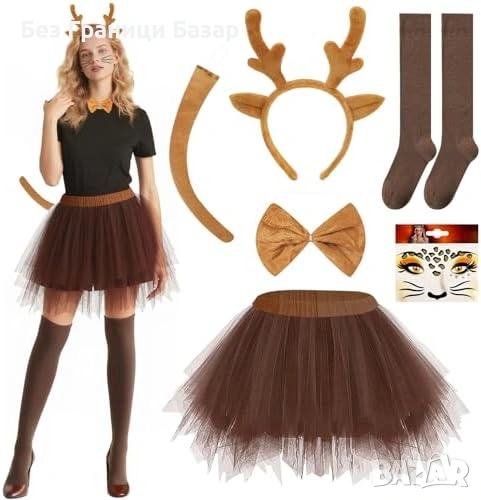Нов Дамски карнавален еленов комплект туту рога опашка чорапи за Хелоуин карнавал