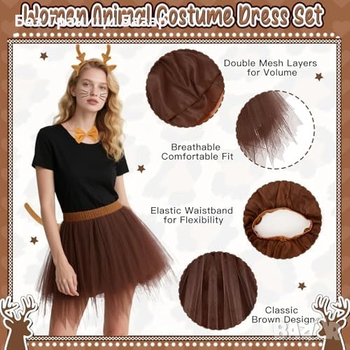 Комплект дамски еленов костюм с тюлена туту пола и аксесоари