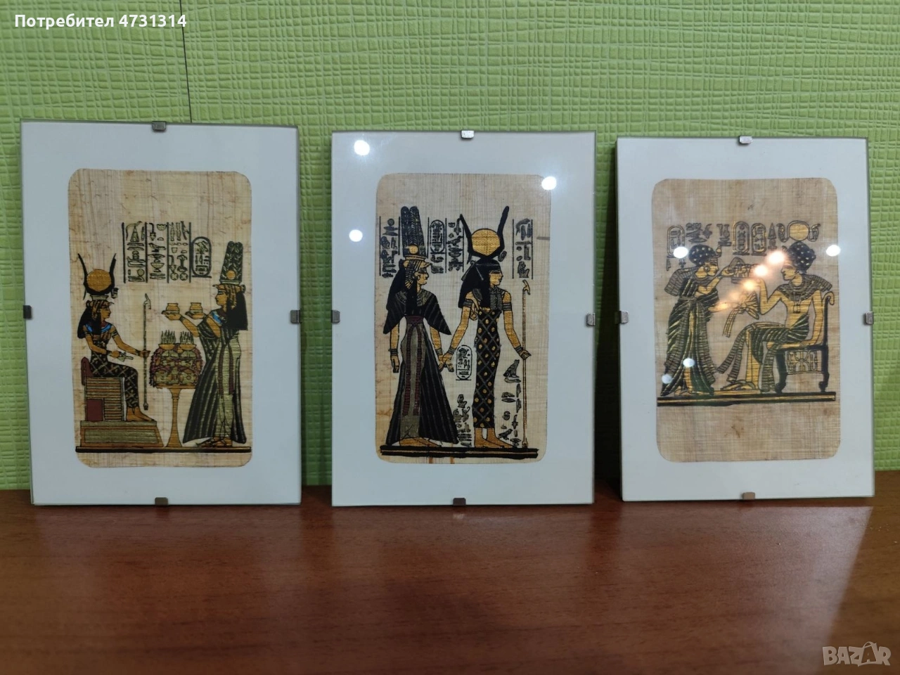 Три папируса поставени в елегантни рамки със стъкло.