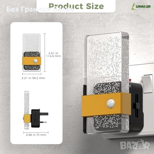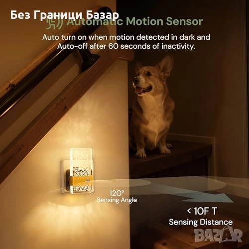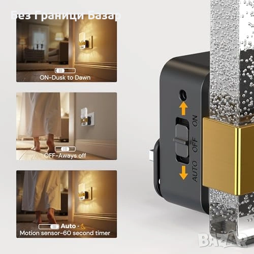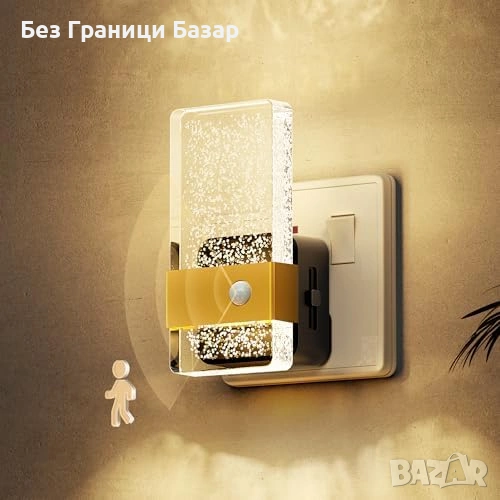 нощна лампа за контакт с сензор за движение и 3 режима на работа