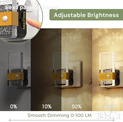 Нова Нощна лампа за контакт със сензор датчик 0-100lm 3 режима димируема