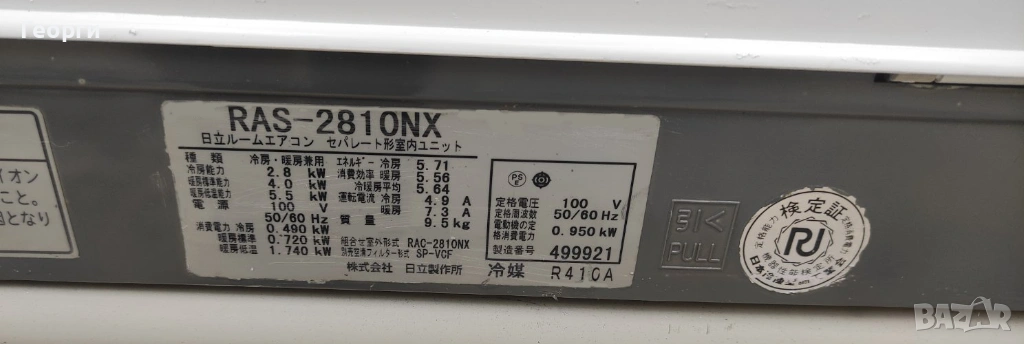 Параметри на климатизатора при 35°C външна температура (27° в помещението):