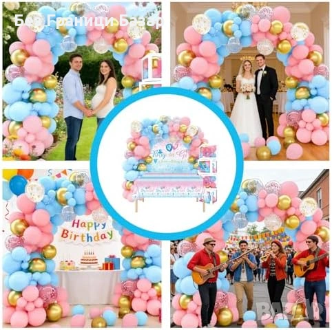 Богат микс от розови, сини, златни и конфети балони за впечатляваща арка и декор