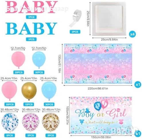 Подходящ комплект за gender reveal, baby shower, рожден ден, юбилей и тематични събития