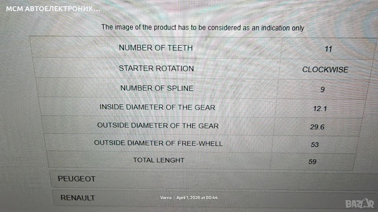 БЕНДИКС за стари модели RENAULT РЕНО и MITSUBISHI CARGO 132177 GM 3198 AS SD3096 SDV7177 ZEN ZN0570 → Обява 54047001