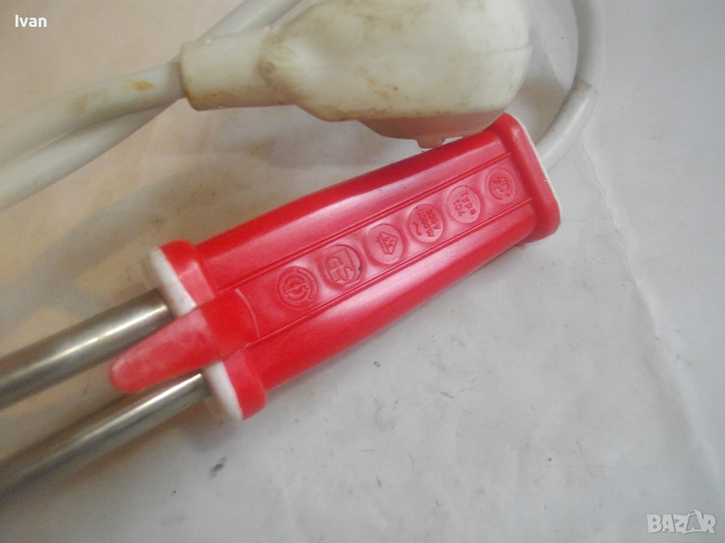 Електрическият нагревател задължително трябва да се използва само когато металната част е потопена във вода между горния и долния маркиращ знак на металното тяло. В никакъв случай не използвайте нагревателя без течност за да не бъде повреден поради прегряване.