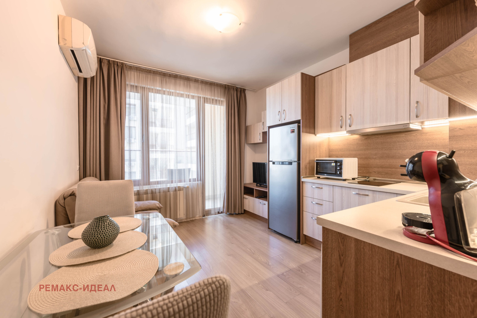 Обзаведен и оборудван със съвременни мебели и бяла техника, включително и съдомиялна машина. В цената са включени интернет(300 мб/с) и телевизия.