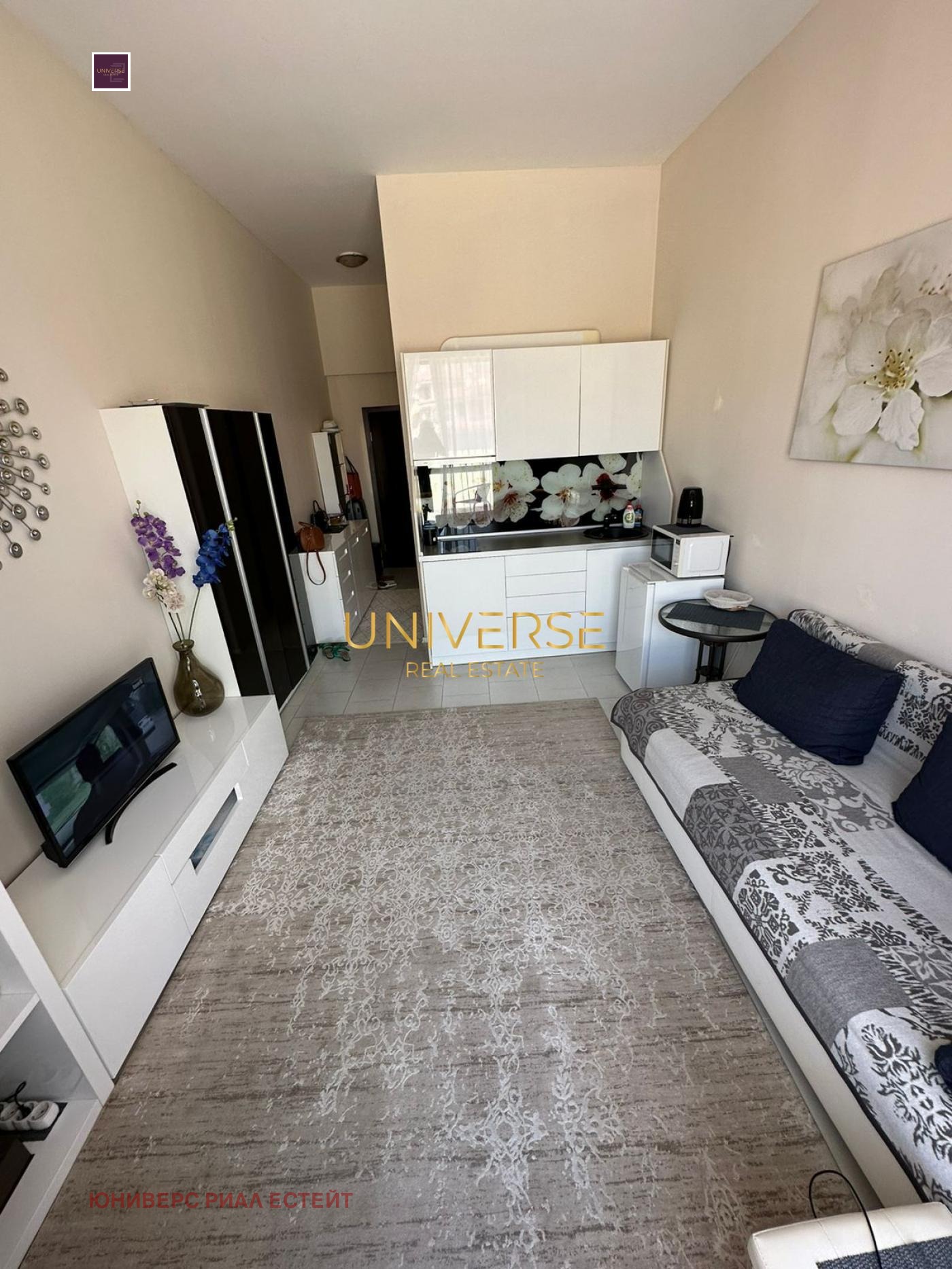 Луксозно студио в Свети Влас. Разполага с голяма тераса с гледка към планината. Апартамент с висококачествен ремонт. Всички мебели и уреди са нови и модерни! Уникално предложение на топ място. Намира се в разкошен жилищен комплекс с първокласна инфраструктура и собствен плаж, разположен на първа линия море. Районът е с добре развита инфраструктура, с барове, ресторанти, магазини. Има Акт 16.#1412.