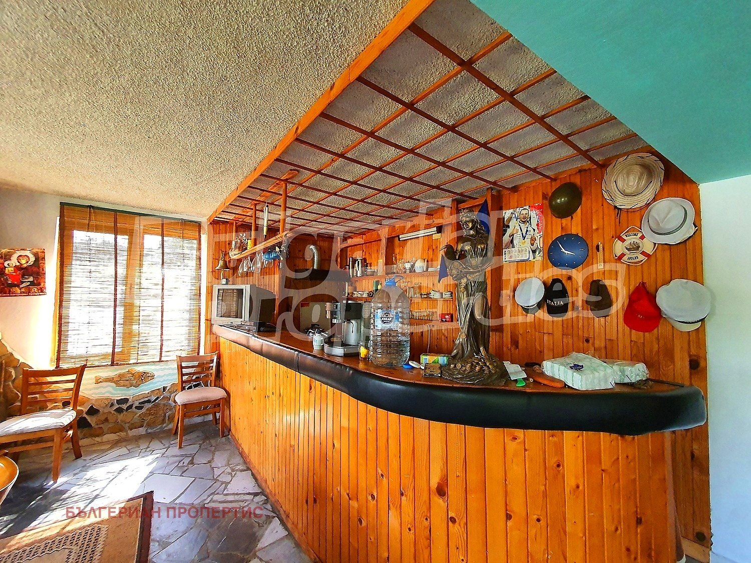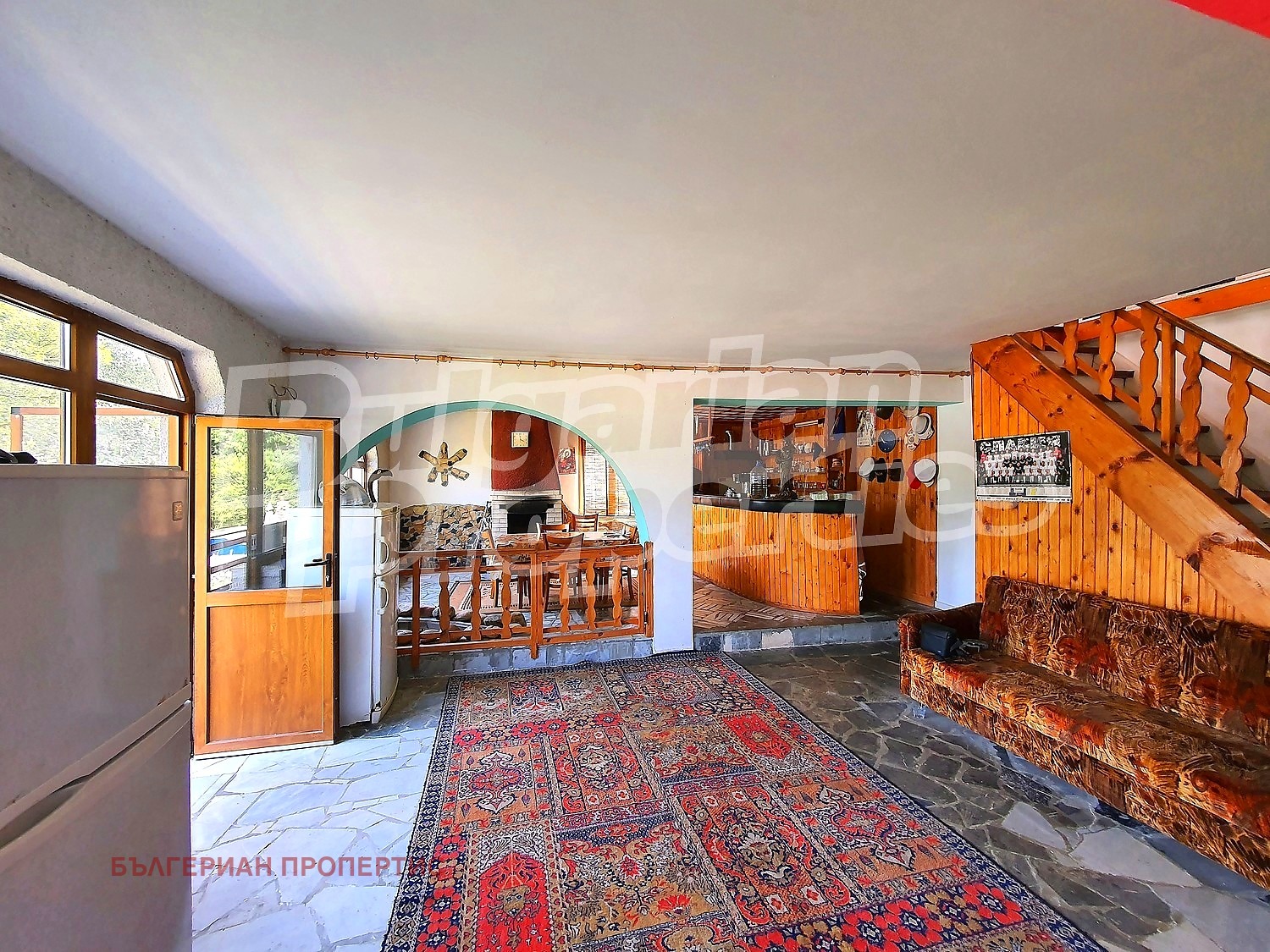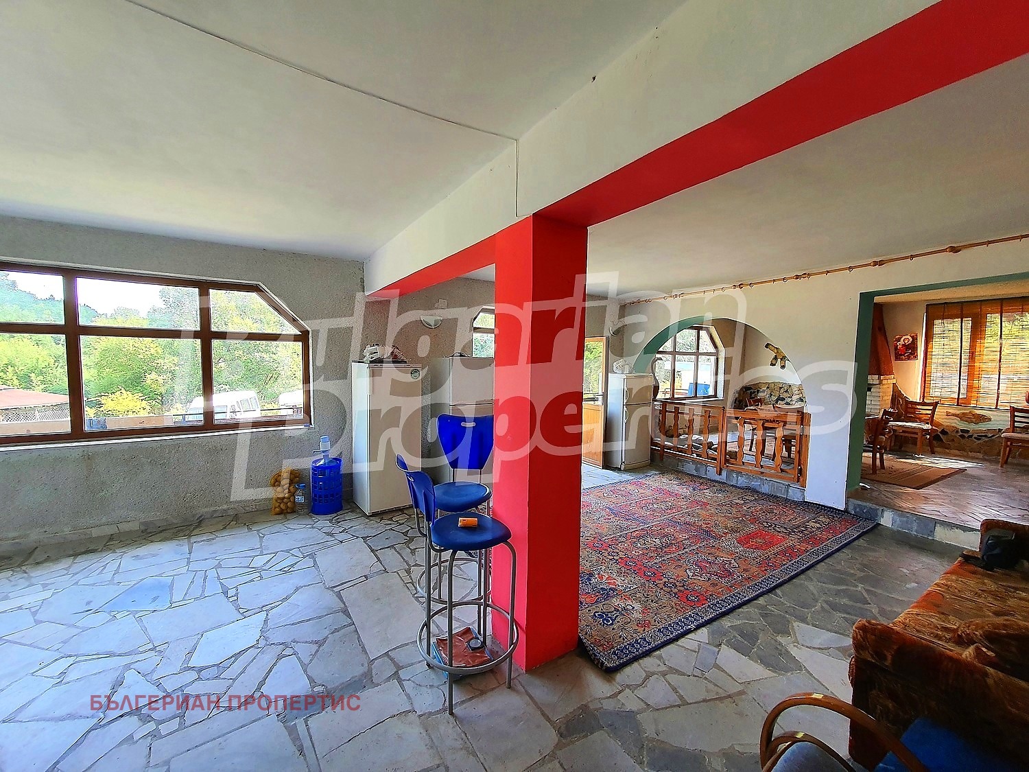 Първи етаж - трапезария и хол с под мрамор и баня с тоалетна (фаянс и теракот);