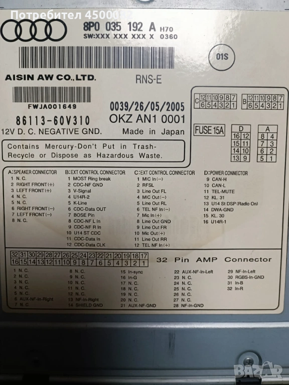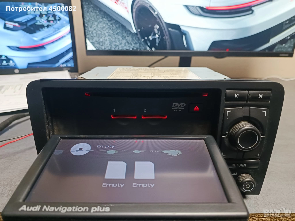 Оригинална навигация RNS-E, свалена от Audi A3 8P. Устройството работи и всички основни функции са изправни.