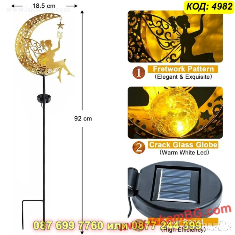 Лампата е предназначена за забиване в земята и е идеална за осветяване на алеи, тревни площи или цветни лехи. Тъй като се захранва от слънцето чрез вграден соларен панел, тя не се нуждае от електрическа мрежа или смяна на батерии. Светлината се активира сама при стъмняване. Металната конструкция е подходяща за външни условия и придава завършен вид на вашата градина през всички сезони.