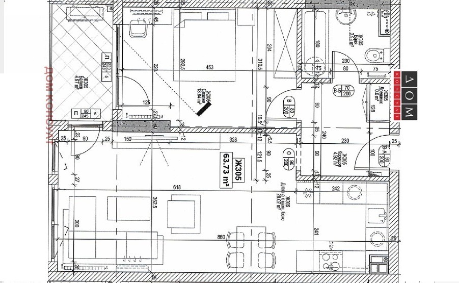 Двустаен апартамент в нова сграда с Акт 15 и Срок за Акт 16 - Юни 2026г., която се намира в близост до The Mall, MEGAPARK, Sofia Tech Park, в близост до новострояща се метростанция Окръжна болница/Цариградско шосе /2027г./.Разпределение: коридор(5,15)кв.м, всекидневна с кухненски бокс(28,02кв.м), спалня(13,84кв.м), баня и тоалетна(3,92кв.м), дрешник и тераса. Застроена площ - 63,73кв.м.Изложение: Изток. Жилището се предлага на шпакловка и замазка с монтирана външна блиндирана врата. Има големи френски прозорци и стъклени парапети, които правят помещенията светли. Отопление на ТЕЦ и ток. като има изградена климатична инсталация. В близост се намират множество хранителни магазини, аптеки. За любителите на спорта и активния начин на живот, кварталът предлага разнообразие от спортни клубове и фитнес зали. В близост е Летище София. Районът граничи с кварталите Младост и Дружба.
