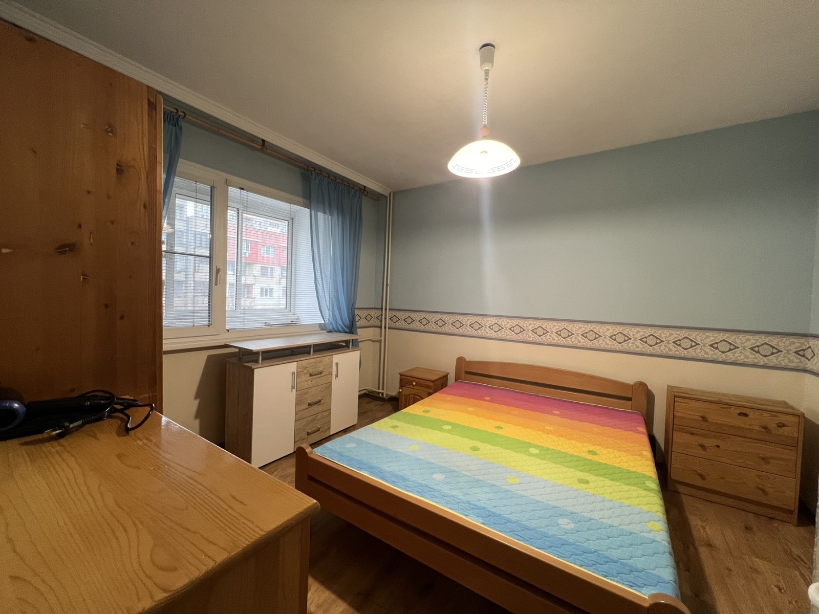 Ако търсите баланса между достъпен наем, уют и отлична локация това е вашето място. Апартаментът се намира на 5-ти етаж от 8 в панелна сграда с добре поддържани общи части и асансьор. 🏢