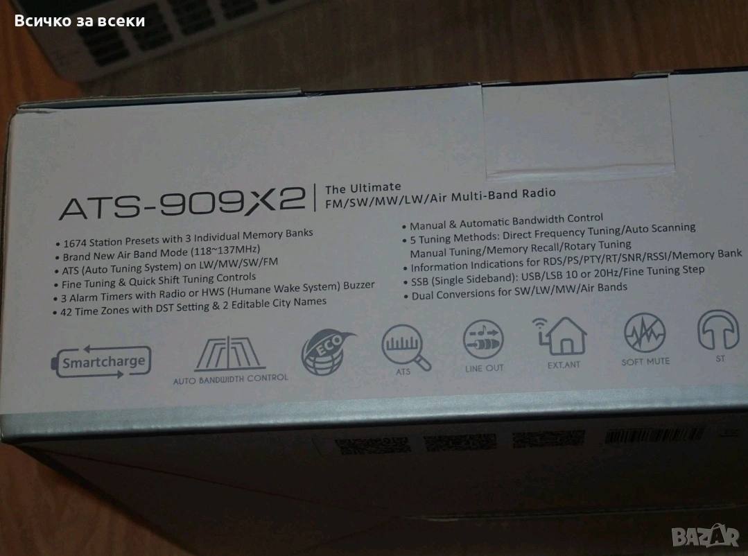 Здравейте, продавам един от топ 3 моделите късовълново многообхватно worl multi band Радио а именно Sangean ATS-909X2 чисто ново пълен комплект както излиза от магазина. Щом гледате тази обява вероятно знаете за какво става въпрос, модела заедно с Tecsun pl880 и pl990x са трите най-добри,най-известни и най-желани модела от радио любителите и мисля че няма нужда да обяснявам за какво става въпрос.