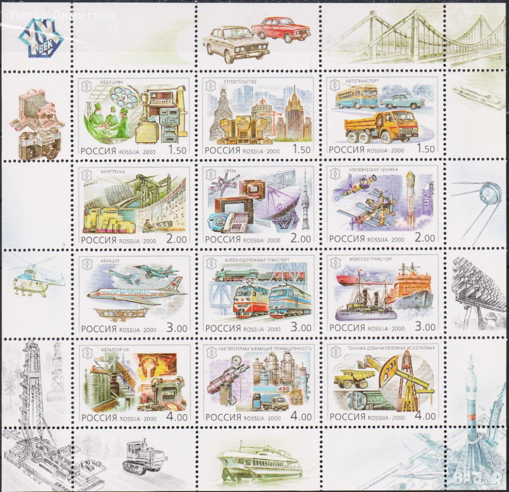 Чисти марки (12) малък лист Технологии от XX век 2000 от Русия.