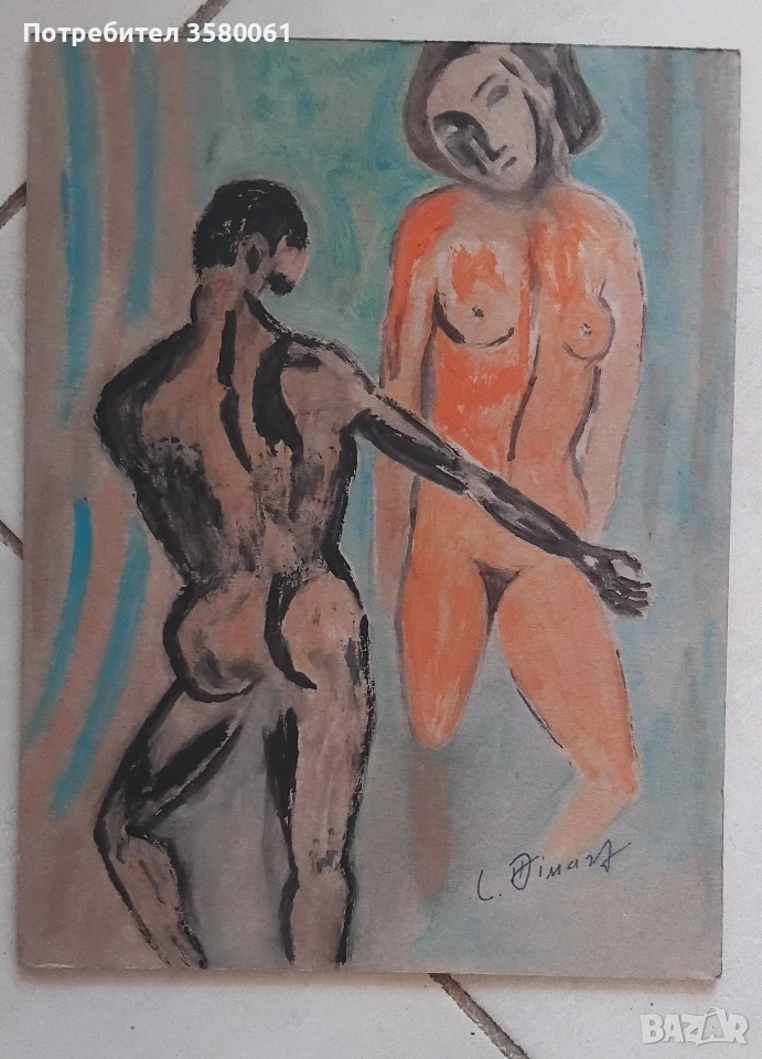 Л.Диманов"Двое",27 Х34см,масло върху картон