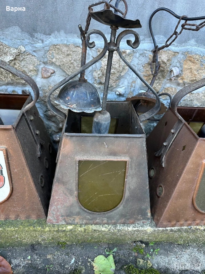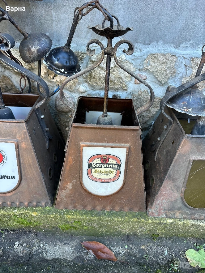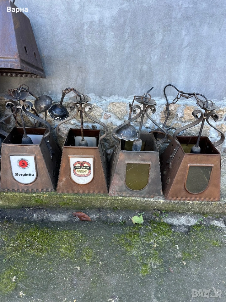 Продавам стари лампи от стара Германска пивоварна Bergbrau -Uslar Лампите са изработени от ковано желязо,налични 4 броя единични и 1 брой тройна.Цената е за 1 брой единична лампа,За всички цената е 270€.