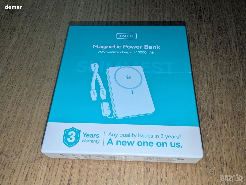 Магнитна външна батерия INIU за MagSafe, 25W Qi2.2 10000mAh, 45W PD, синя