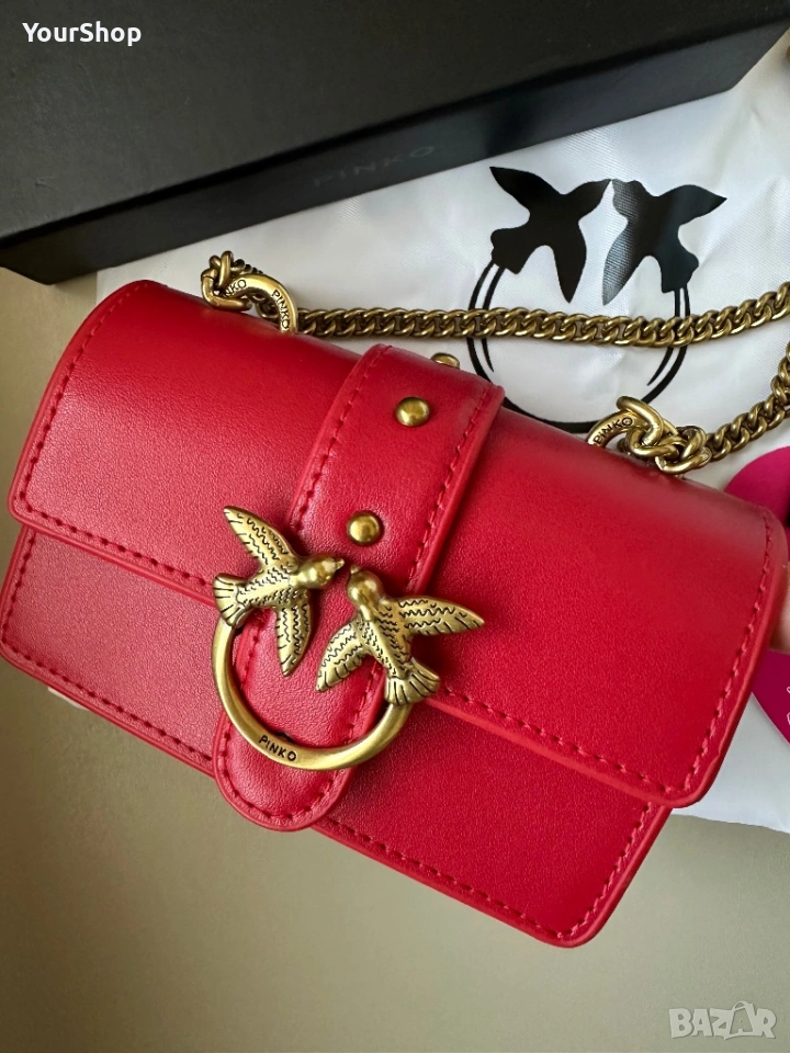 Оригинална чанта Pinko micro model в червен цвят → Обява 54048647