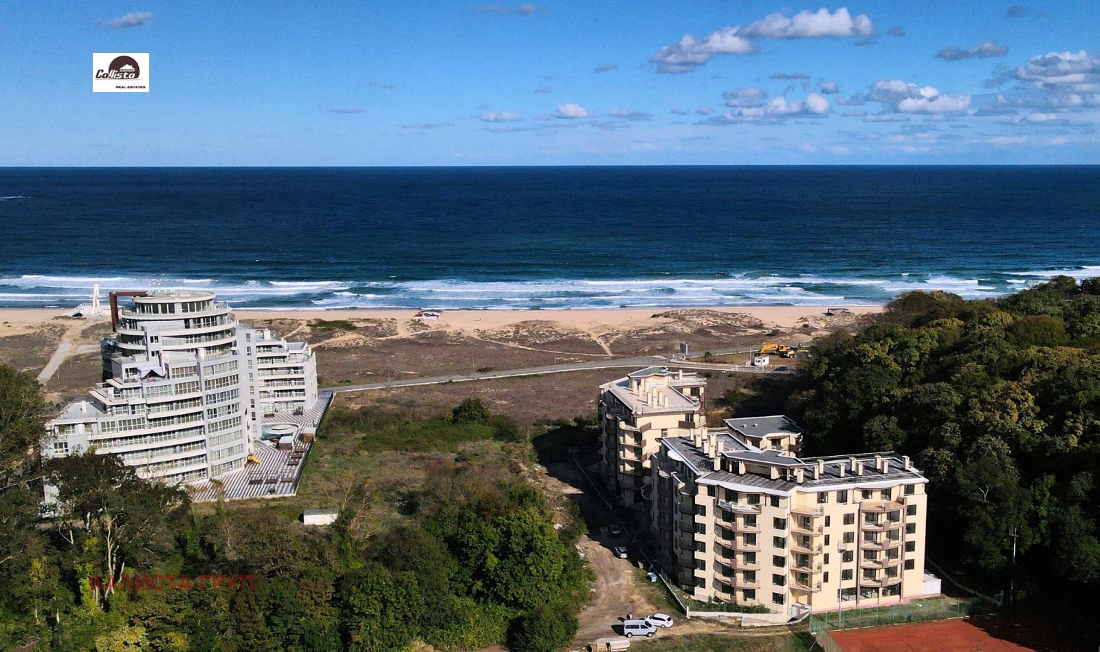 Комплексът е изграден до красива и широка плажна ивица, покрита с мек златист пясък и екзотични пясъчни дюни. Морската вода е кристално чиста, топла и спокойна, с гладко пясъчно дъно. Въздухът е чист и свеж, с прохладен полъх от заобикалящите вековни широколистни дъбови гори.