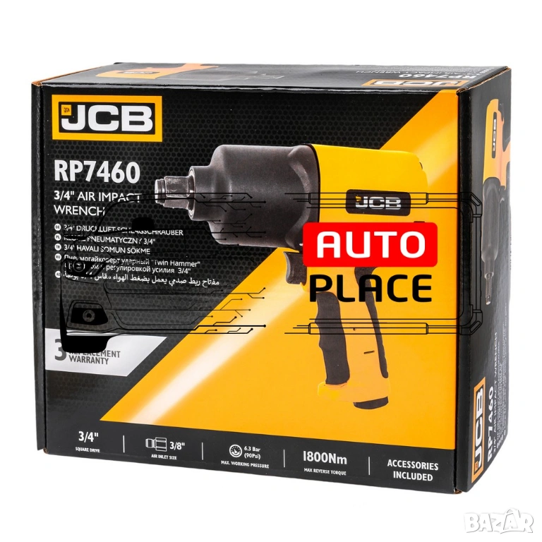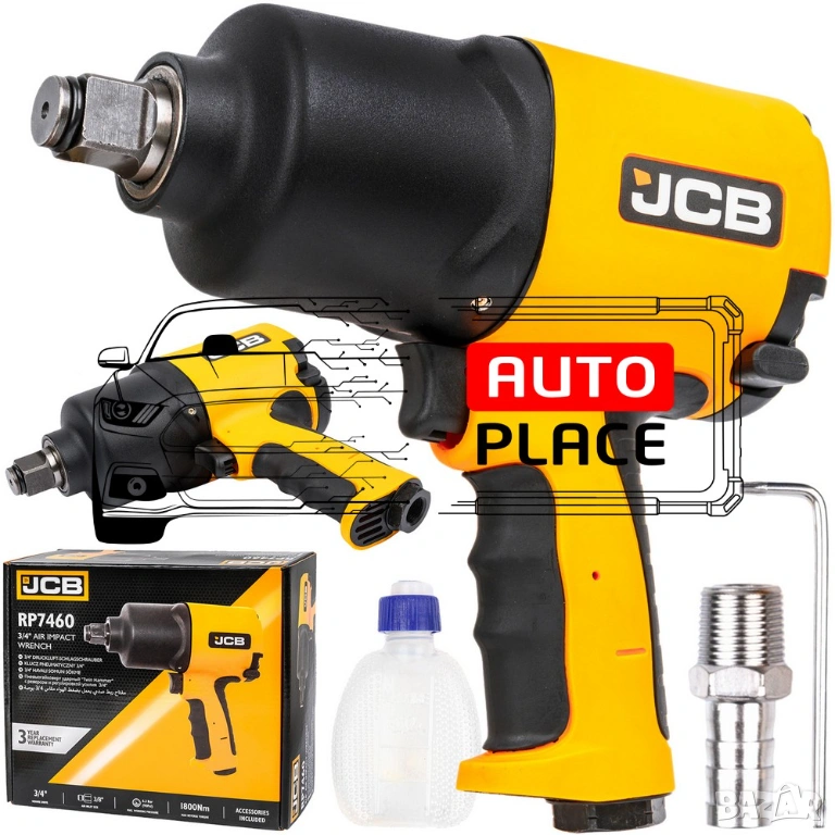 JCB-RP7460 е мощен, здрав и лек пневматичен ударен гайковерт с ¾” квадратно задвижване, предназначен да се използва за широка гама от тежкотоварни автомобилни приложения, включително; ремонт на превозни средства, поддръжка на тежко оборудване и монтаж на продукти.