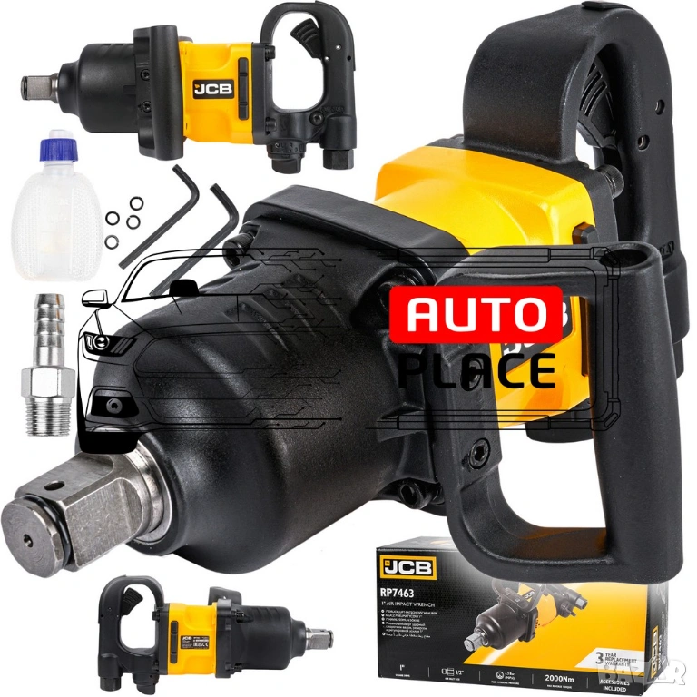 Пневматичен ударен гайковерт JCB , RP7463 е с максимален въртящ момент 2000Nm. С подсилен корпус от устойчив композитен материал. Лесна работа . Устройството има регулируема сила на затягане и разхлабване. Ергономична дръжка и компактен размер.