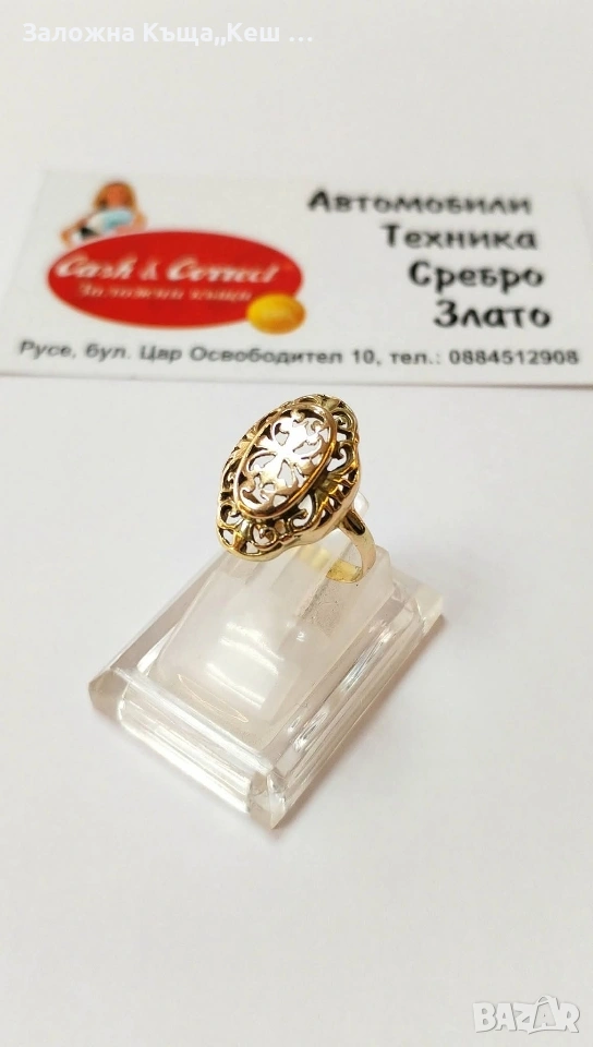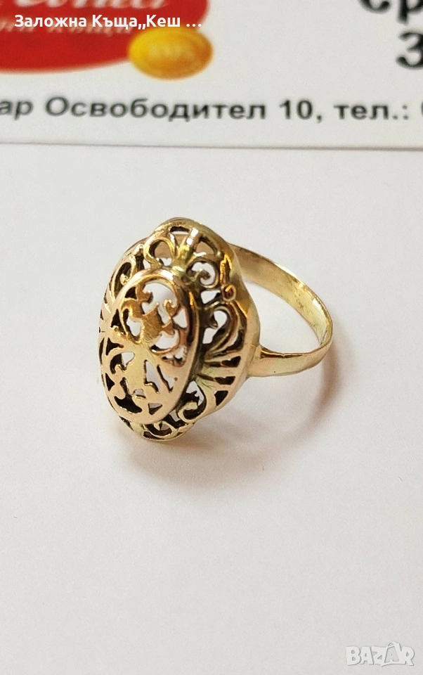 Златен дамски пръстен 14К.Тегло 3.00 гр.Размер 53.Цена 243 €. → Обява 54049127