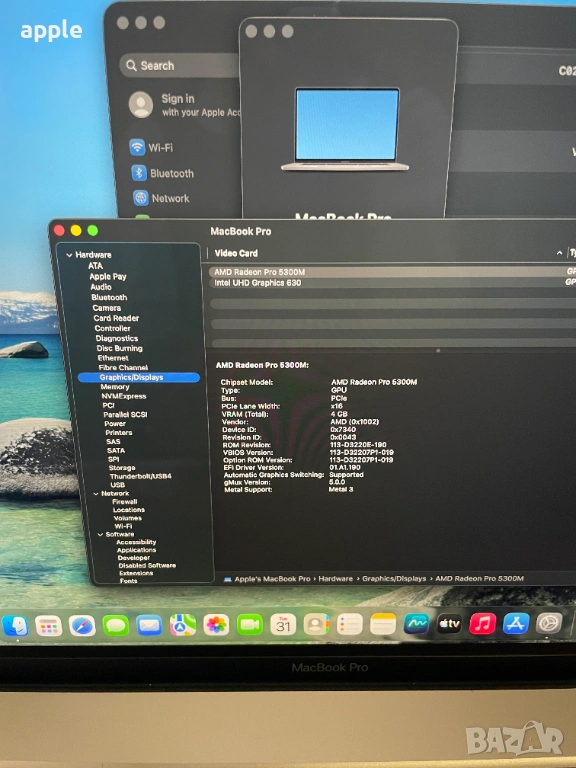 AMD Radeon Pro 5300M с 4GB GDDR6 памет и автоматично превключване на графичните карти