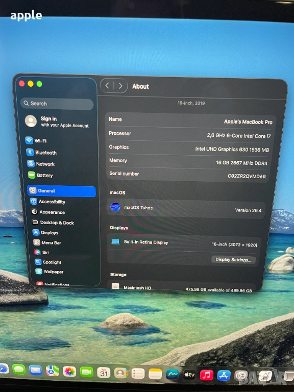16-инчов Retina дисплей с LED подсветка, с IPS технология и естествена резолюция 3072 x 1920