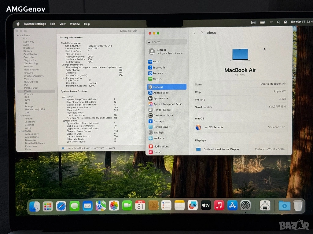 Нов Macbook Air M2 2022 8GB Ram/256GB SSD Silver → Обява 54049214