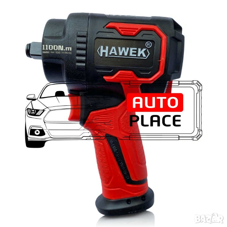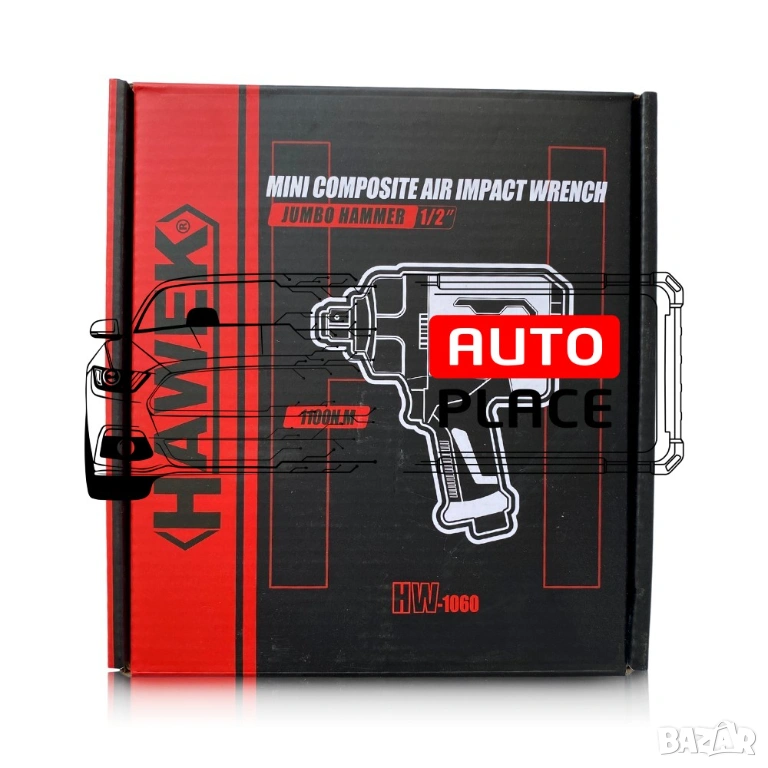 Пневматичен ударен мини гайковерт с къс шпиндел 1/2“ 1100Nm HAWEK